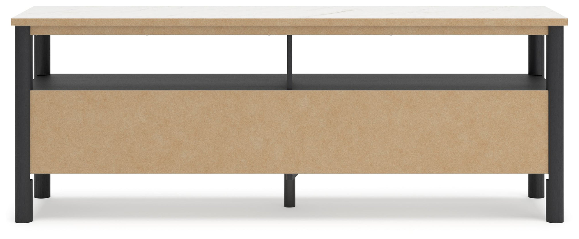 Imagine a TV stand that adds sophisticated and minimal boho style to your home with a stylish storage solution. This stand does just that. Its sleek design and replicated marble top create an upscale ambiance that's perfect for displaying your television and organizing your space.