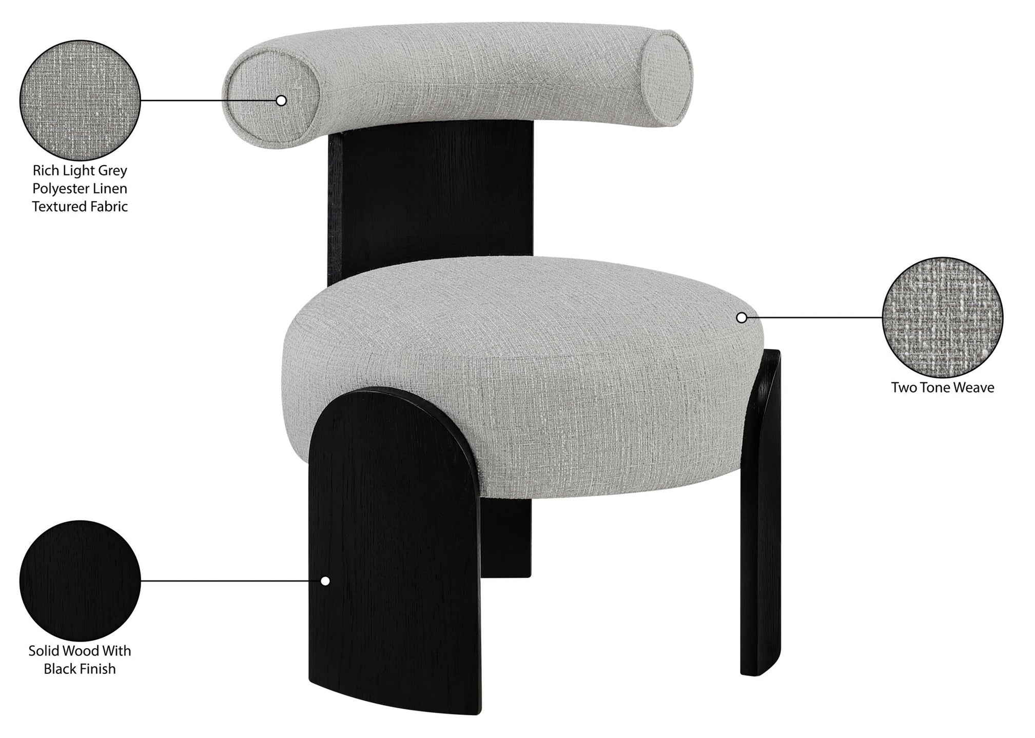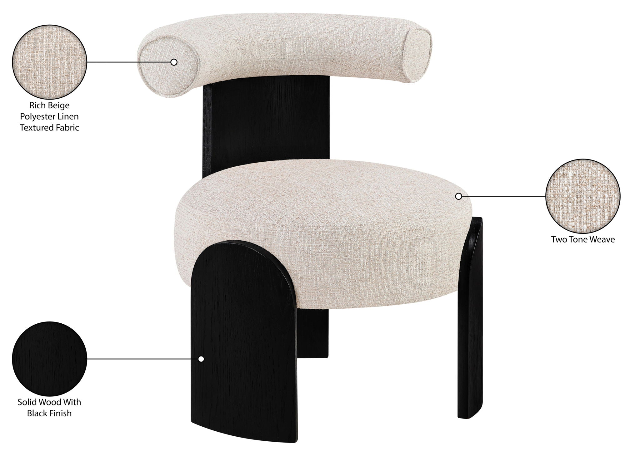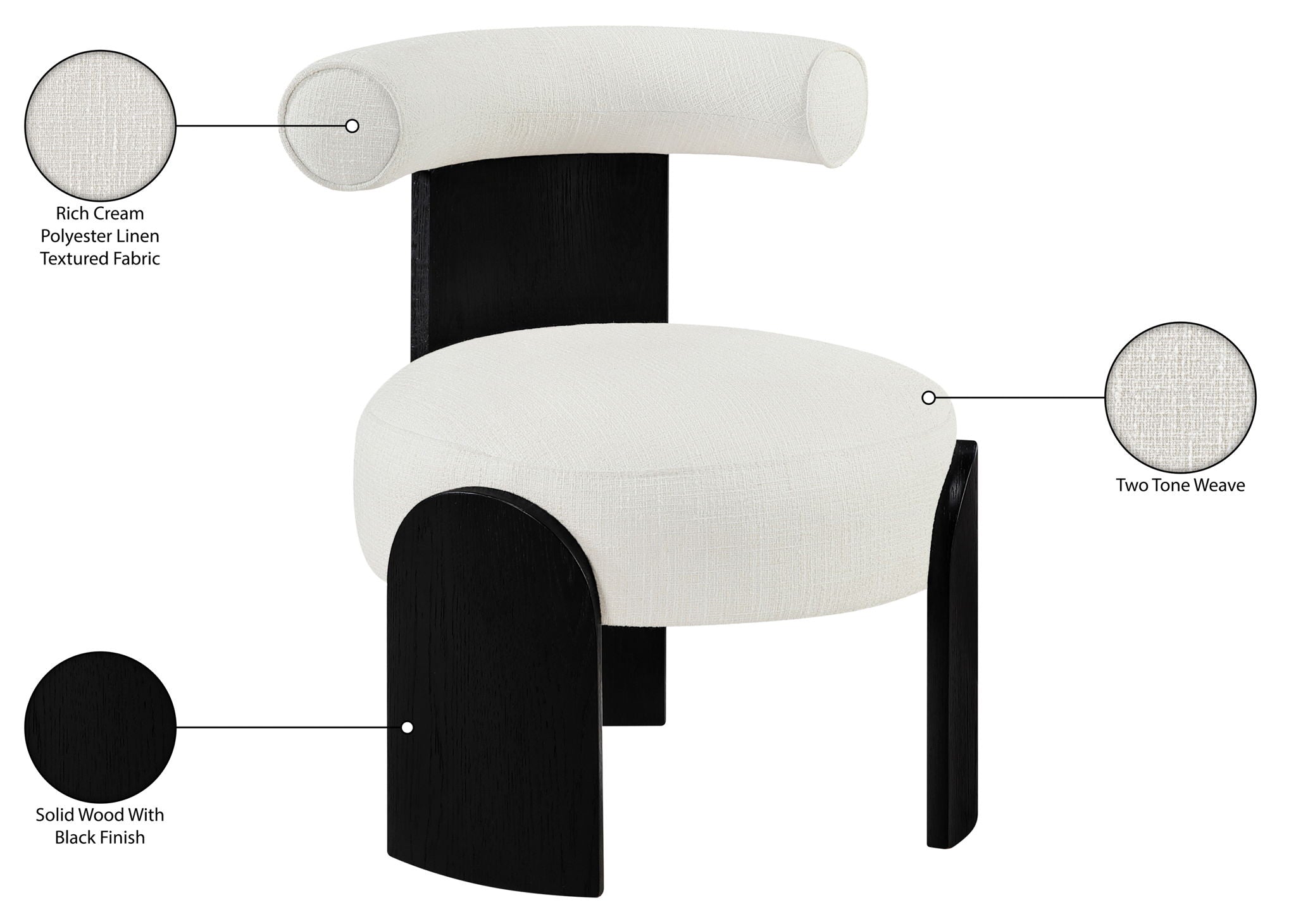Calder - Linen Textured Fabric Upholstered Accent Chair - Cream / Painted Black