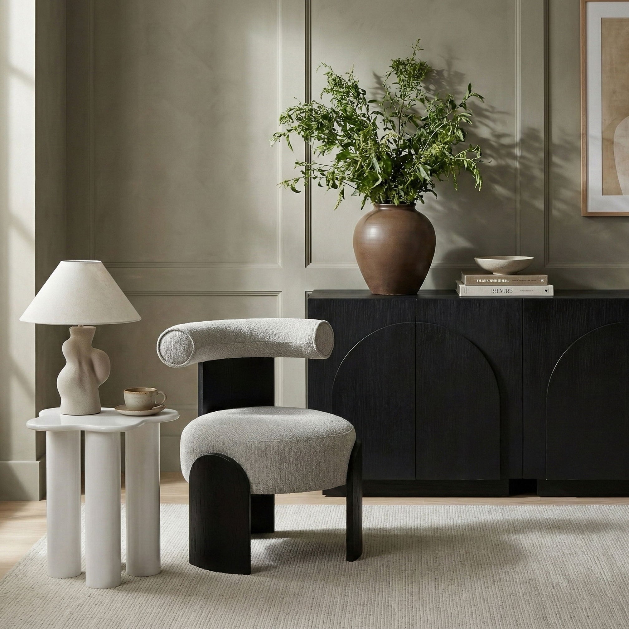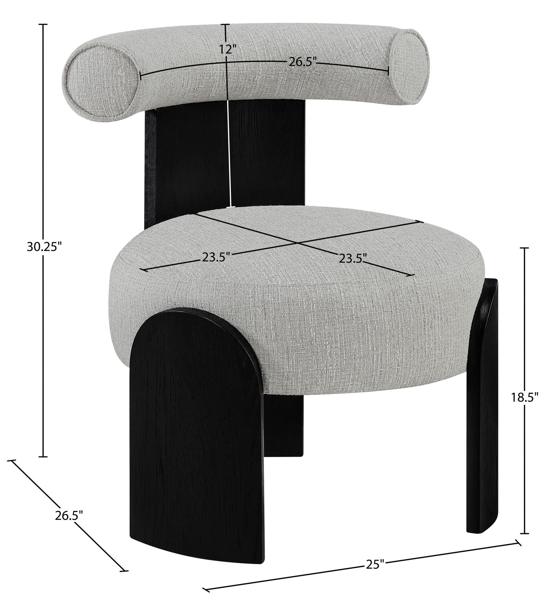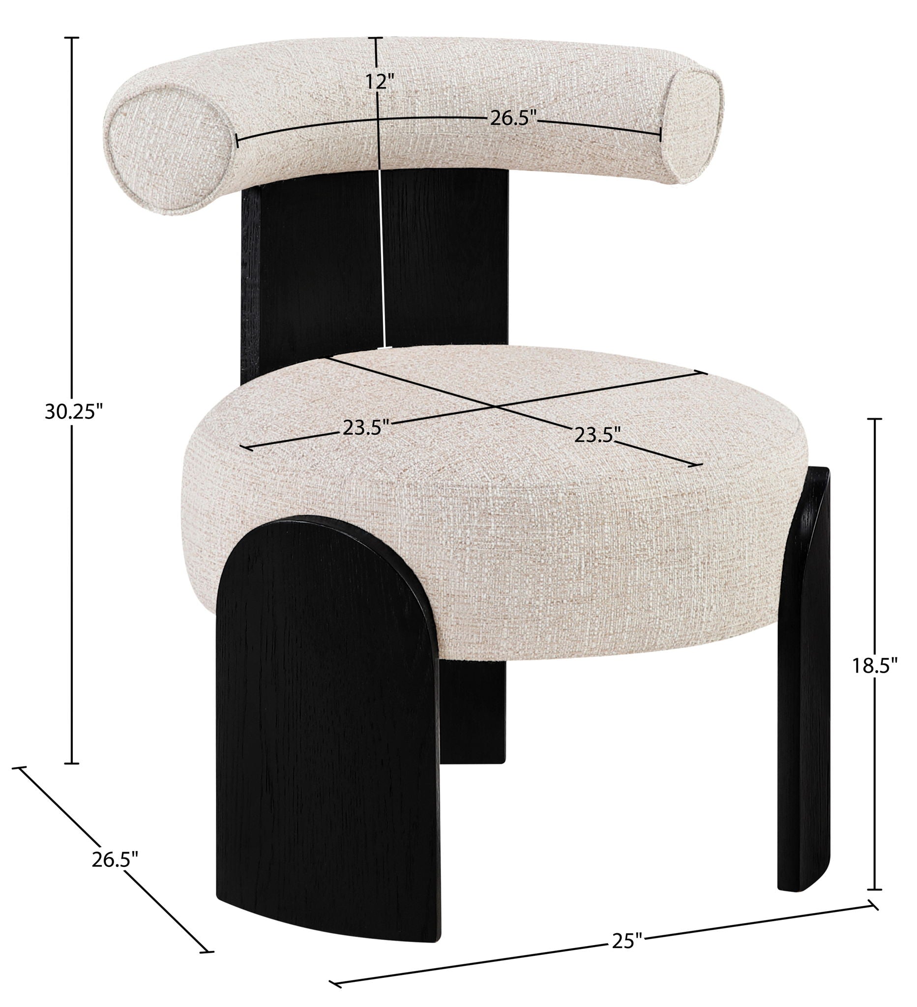 Calder - Linen Textured Fabric Upholstered Accent Chair - Cream / Painted Black
