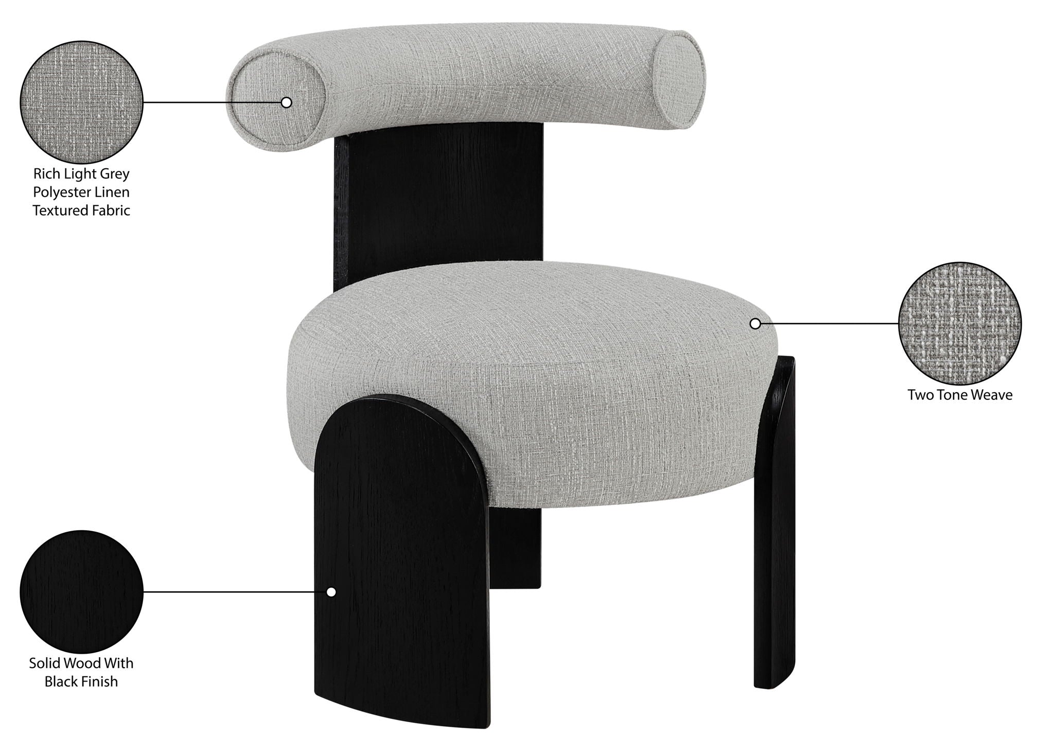 Calder - Linen Textured Fabric Upholstered Accent Chair - Painted Black Base
