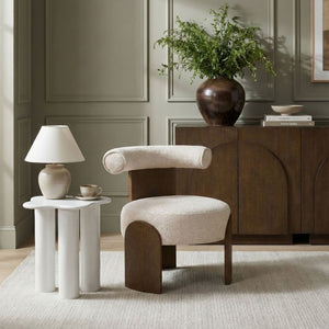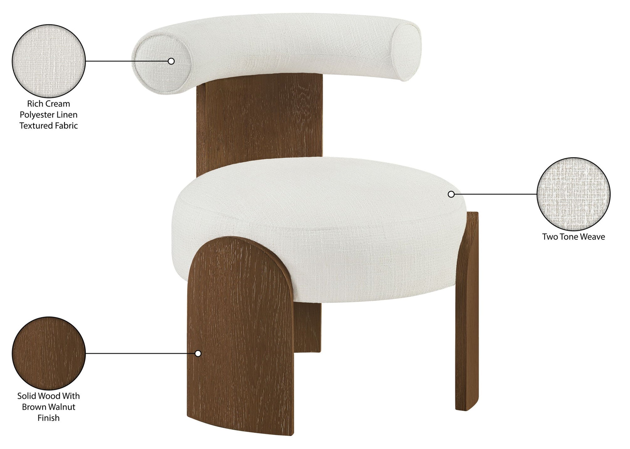 Calder - Linen Textured Fabric Upholstered Accent Chair - Cream / Painted Brown