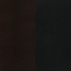 This stylish stool adds a touch of casual sophistication to your home bar. The angled legs and round brace offer sturdy support while you catch up on the news. The merlot wood finish is warm and inviting as you settle in for the evening with a glass of wine. The padded seat is upholstered in black leatherette and swivels so you're ready for conversation at any turn. To top it off, the unique backrest has a can't-miss design that's sure to please.