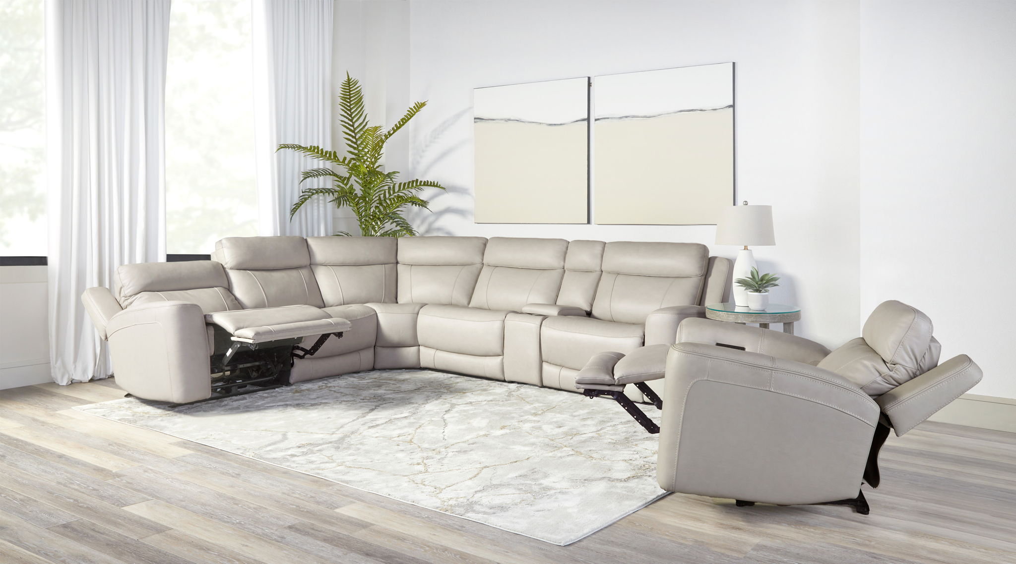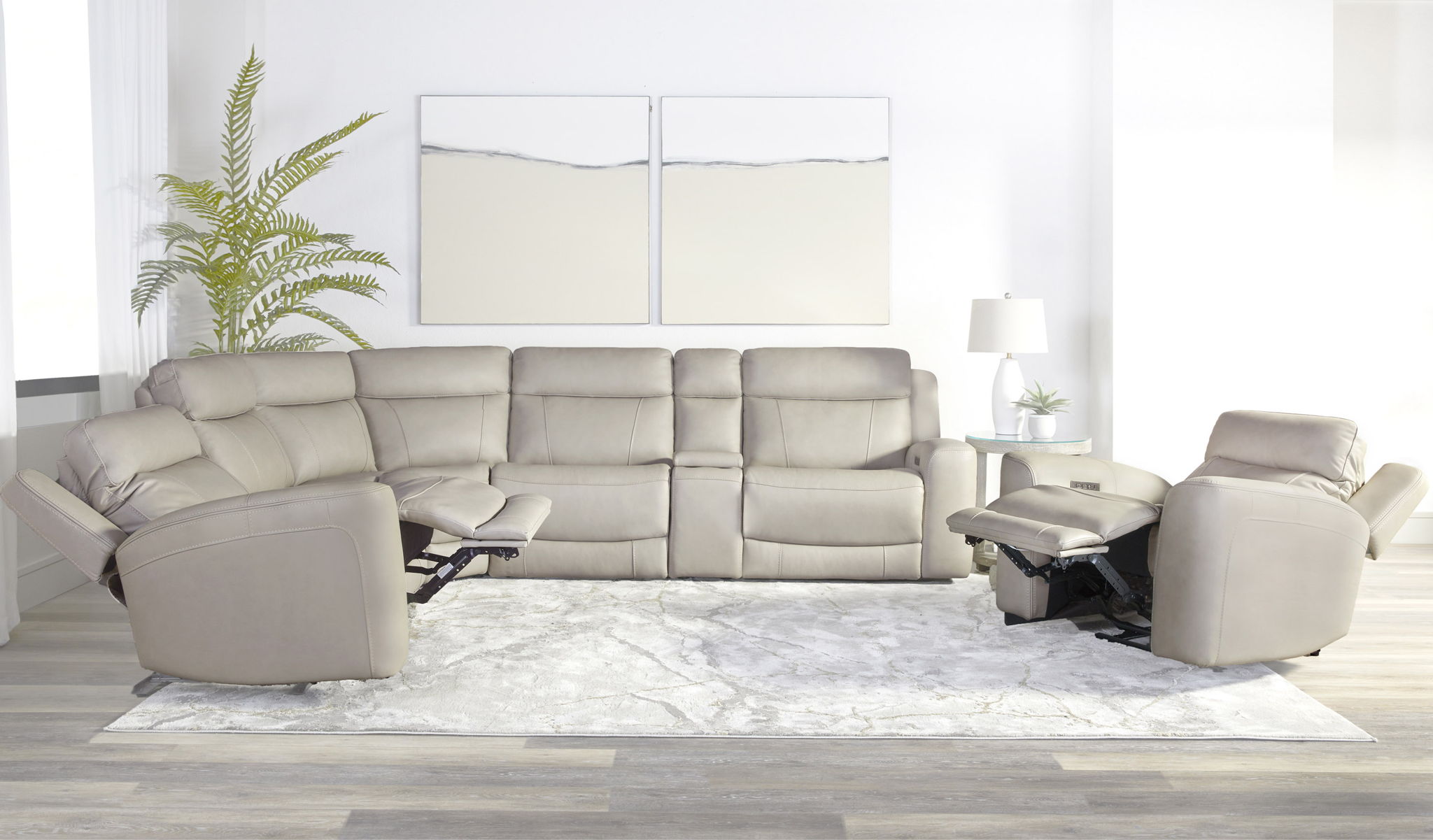 Calgary - 7 Piece Modular Reclining Sectional With Power Adjustable Headrests - Stone