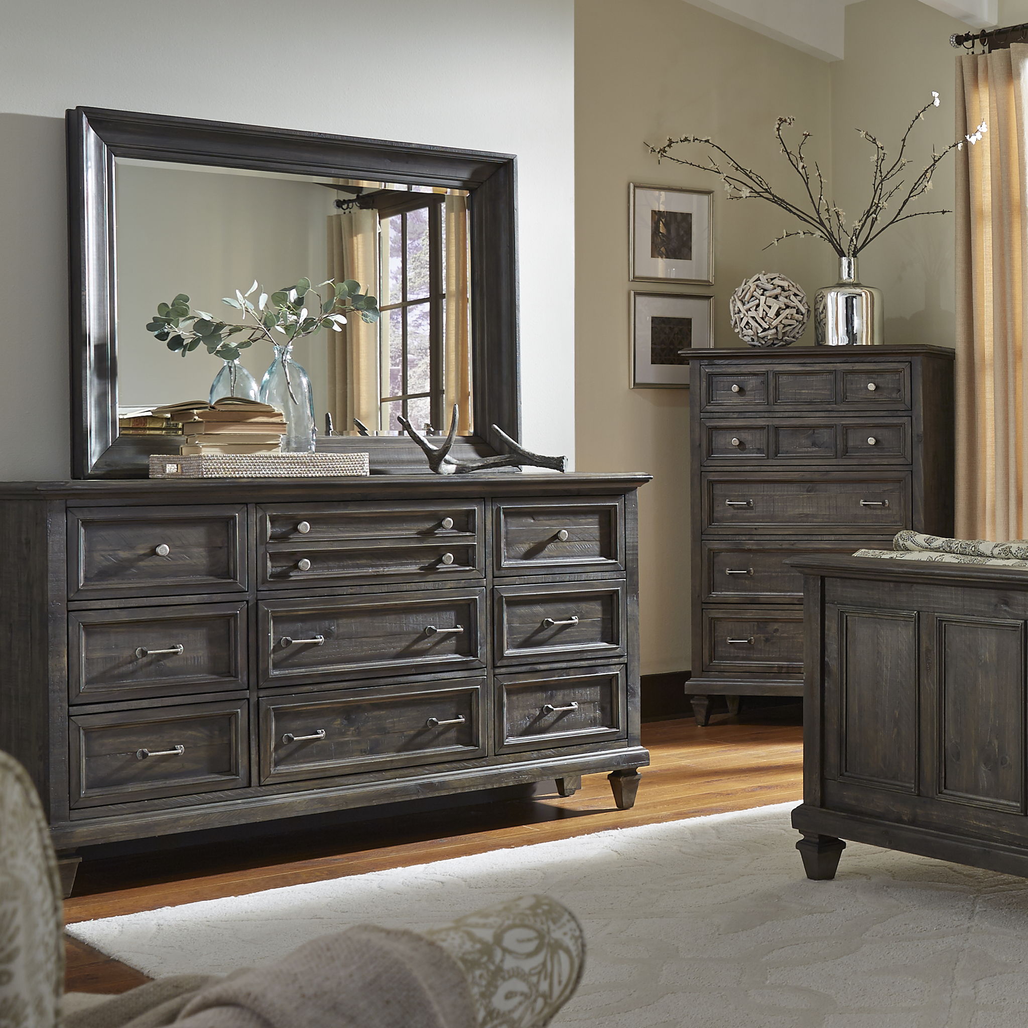 Calistoga - Drawer Dresser With Landscape Mirror - Weathered Charcoal