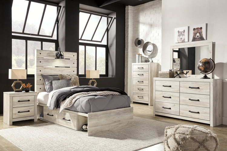 Cambeck - Twin Panel Bed with 4 Storage Drawers - Whitewash