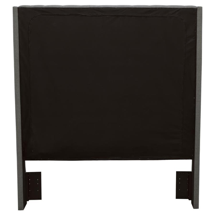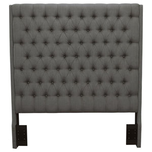 Change up the look of a master or guest bedroom with a stylish modern headboard. Its fully upholstered, complete with a straight lined silhouette that brings refined, understated style to your bedroom. It boasts plush cushioning wrapped in dark gray fabric upholstery for a plush, inviting look and feel. Button tufting adds character and classic dimensionality, perfect for a bedroom with elevated, honest style. A bed frame is required for use with this headboard.