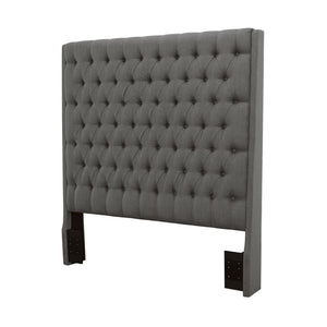 Change up the look of a master or guest bedroom with a stylish modern headboard. Its fully upholstered, complete with a straight lined silhouette that brings refined, understated style to your bedroom. It boasts plush cushioning wrapped in dark gray fabric upholstery for a plush, inviting look and feel. Button tufting adds character and classic dimensionality, perfect for a bedroom with elevated, honest style. A bed frame is required for use with this headboard.