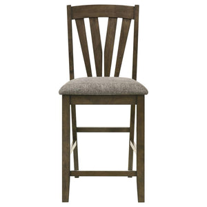 Complete your dining experience with this stylish and comfortable counter height dining chair. Crafted with a solid wood frame, this side chair offers sturdy support while the foam-padded seat cushions provide plush comfort. Upholstered in a grey fabric, the seat adds a warm and inviting feel to any dining space. Whether paired with your dining table or used as an accent chair, this chair combines functionality with a timeless look. Its classic design ensures it complements a variety of décor styles.