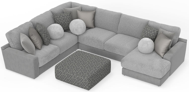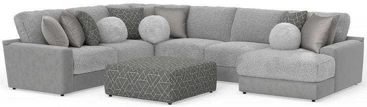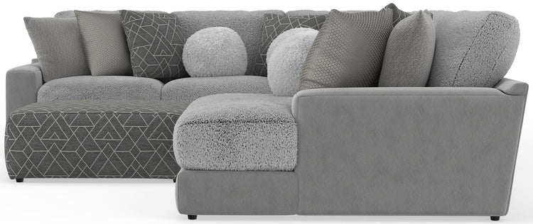 Canyon - 4 Piece Sectional With Cuddler Seat Cushions, Included Accent Pillows And Cocktail Ottoman (Right Side Facing Chaise) - Platinum