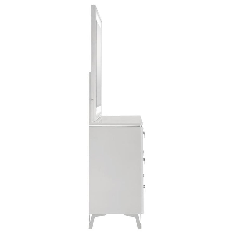 Cassia - 6-Drawer Dresser Cabinet With Mirror - White High Gloss