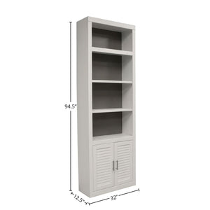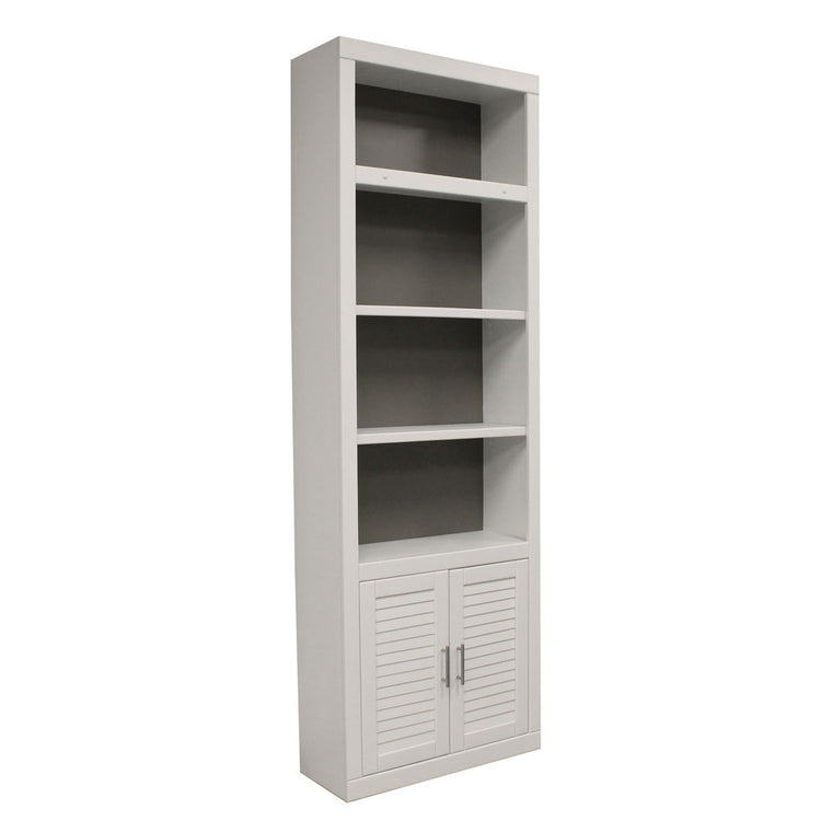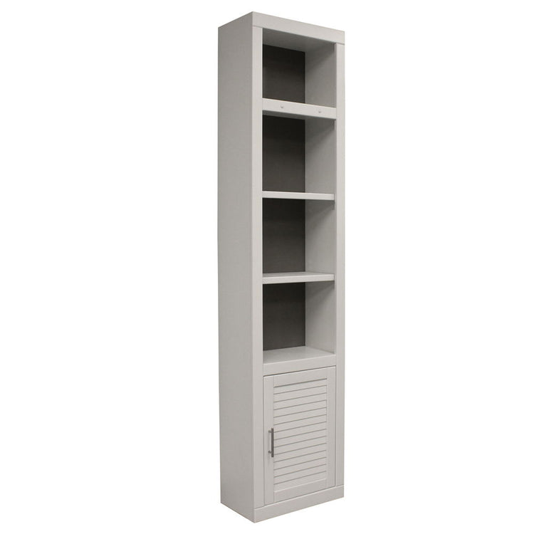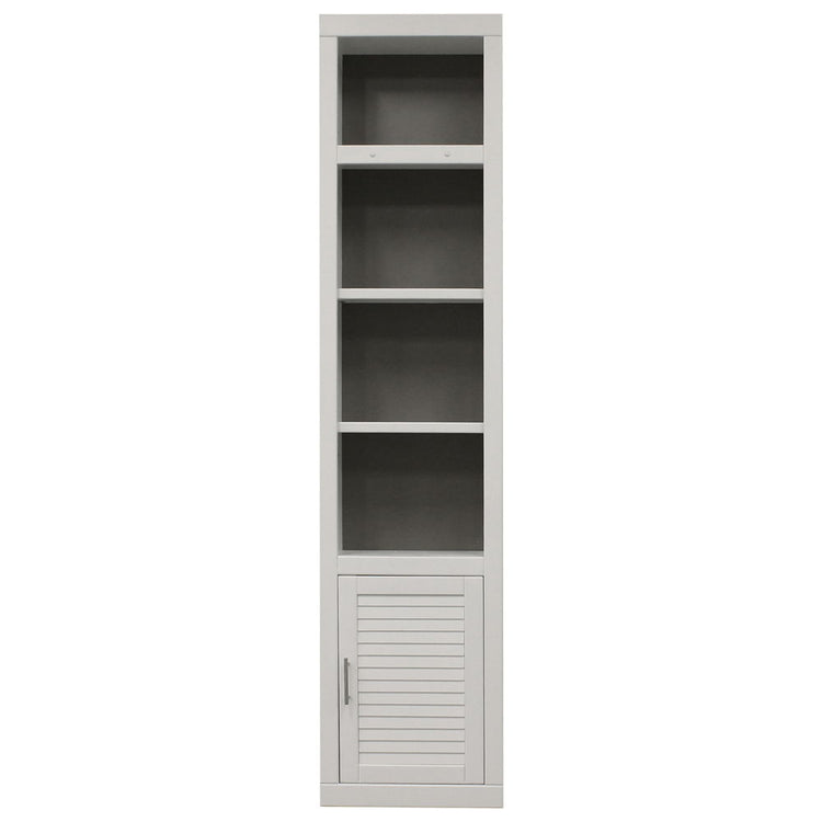 Visually pleasing yet highly functional, this open top bookcase in Cottage White makes stylish storage and display easy to achieve. Designer touches render it customizable and let you reverse its back panel from white to grey and the cabinet door from paneled to louvered.