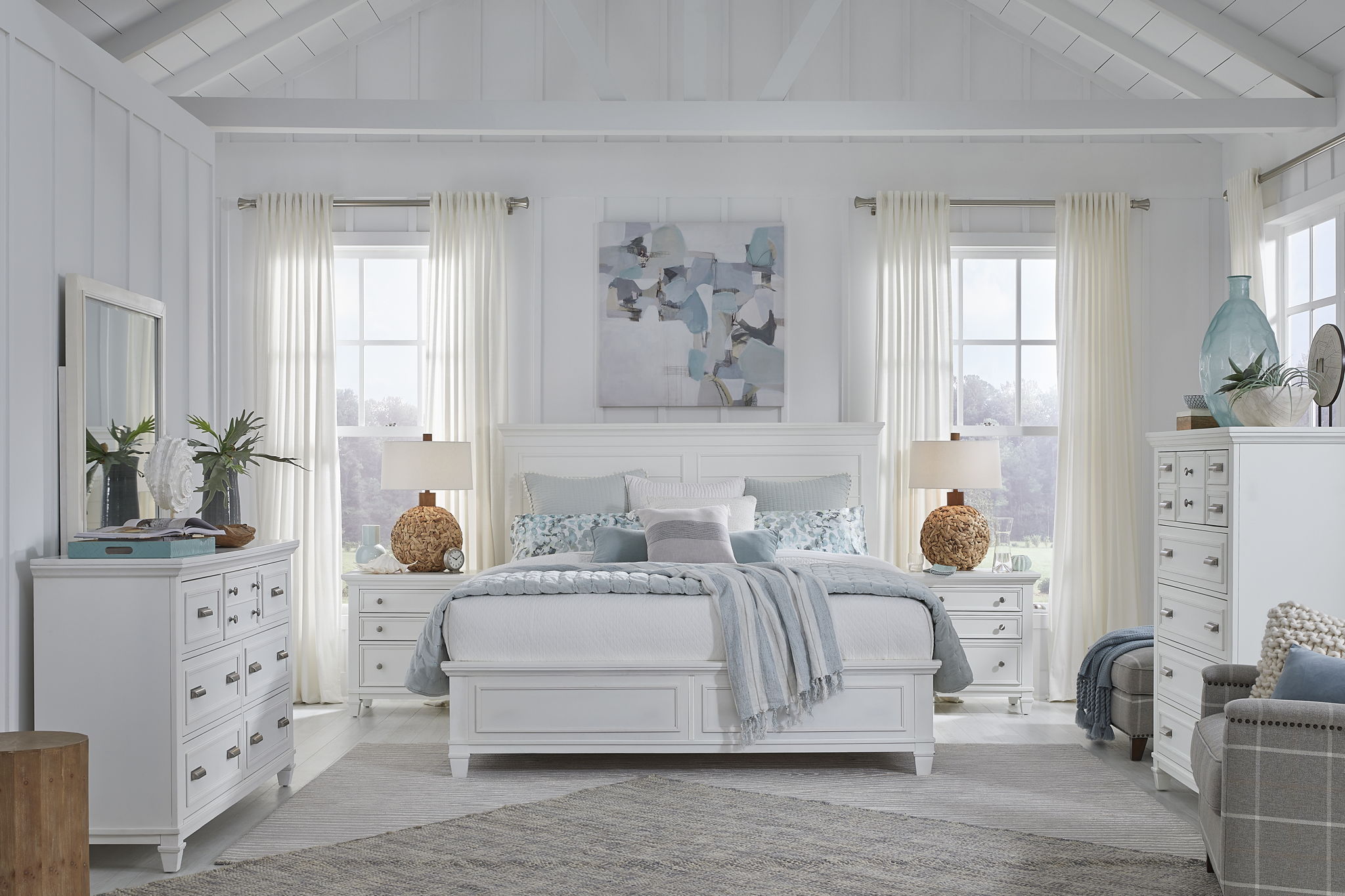 Charming in every way, the Charleston bedroom collection provides the foundation for a dreamy bedroom. With clean shapes and crisp lines, its fresh transitional aesthetic can be styled to complement cottage, coastal or modern farmhouse decor. A louvered design adds classic character and visual appeal to the panel headboard and door panels. Fresh finishes in White Dove and Harbor Gray, accented with Brushed Pewter hardware, establish these bedroom furnishings as design essentials. With style and functionality that speaks to the heart of a well-designed space, Charleston is the perfect choice for swoon-worthy guest rooms and master bedroom retreats.