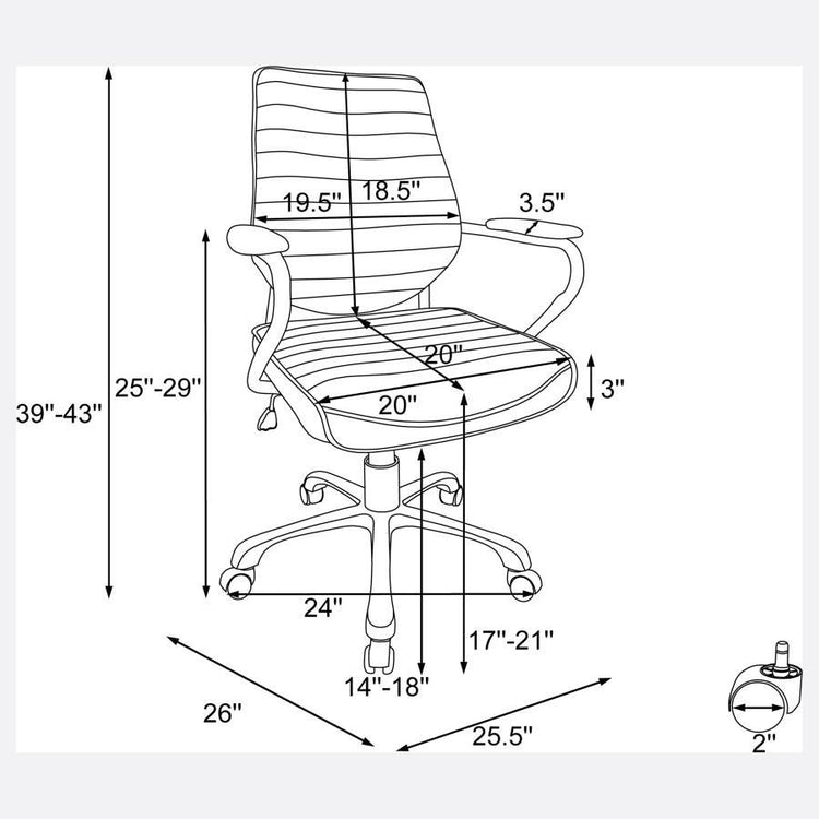 Cool, classy, and comfy, this office chair has it all. A tall, wide back combines with a padded seat and armrests to ensure maximum comfort and stability. Its swivel base is complete with casters, allowing you to move around with ease. Its seat is embellished with sleek, straight lines for an added touch of style. Constructed with high-quality aluminum, this versatile chair offers superior support and durability.