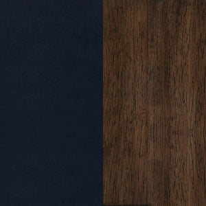 Go bold in both tones and silhouette when you add this fabric accent chair to your home. Chair is upholstered in soft dark blue fabric. Padded seat and back cushions provide hours of comfort. Rich brown armrests and legs offer warmth and support. It's a bold, handsome addition to your living room or den.