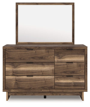 Nostalgic style, retooled for today’s trends. This dresser with mirror puts an elevated twist on mod aesthetics. Its warm brown tones reflect the mid-century vibes you love, while the angular base incorporates contemporary motifs. Integrated drawer handles round out the look in sleek style. With this dresser, you can build your bedroom into a modern haven with a touch of retro-cool flair.