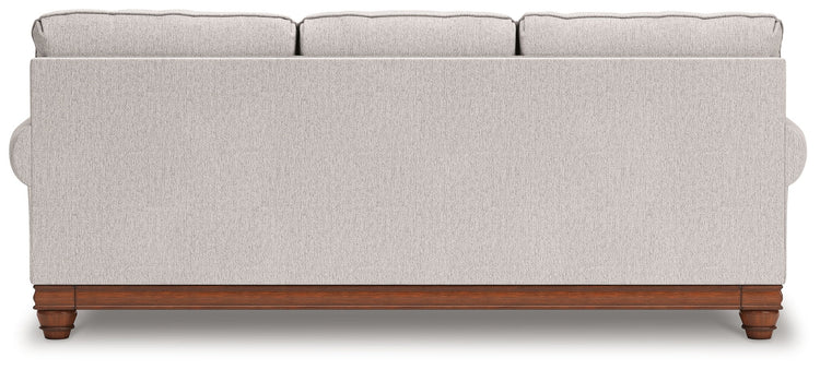 Fresh yet classic. That’s the beauty of this sofa. Dressy and also soft to the touch, its organic neutral-toned upholstery is sure to bring a transitional farmhouse aesthetic to your living space. Accent pillows in windowpane plaid and textured solid hues infuse a cozy and inviting farmhouse sensibility, while a full wraparound base and decorative turned legs complete the sofa's timeless look. It's the perfect place to unwind with your besties after a long day.