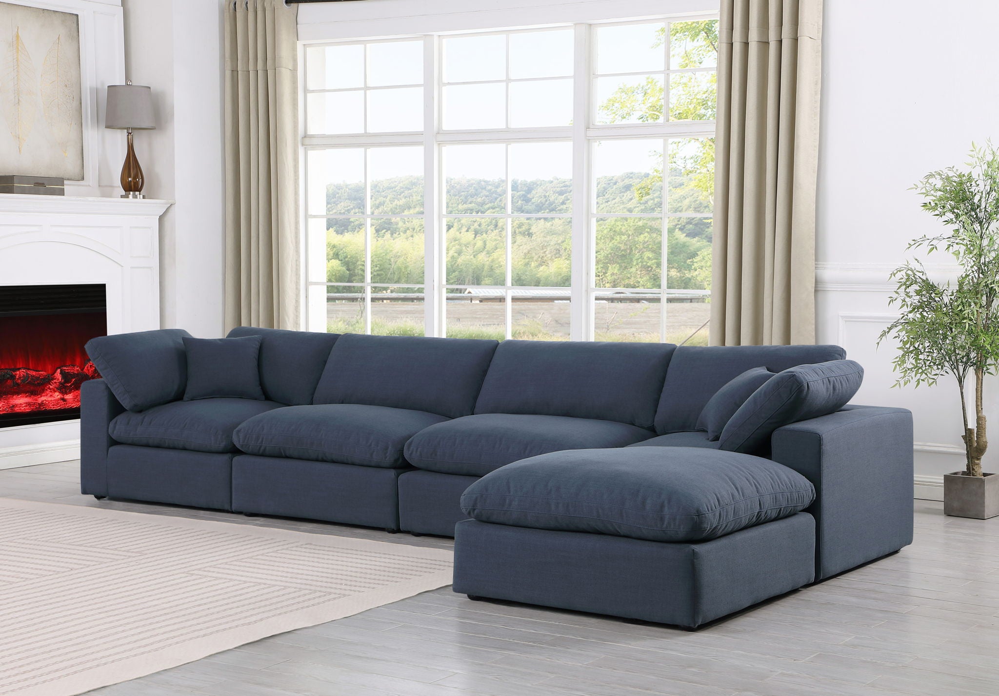Comfy - 5 Piece Linen Modular Sectional With Chaise - Blue