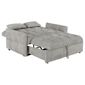 Get the best of both worlds for snoozing and lounging with this sleeper sofa. All over-tufting enhances the comfort of the chenille fabric. Slim arms and a rounded rectangular backrest give it a modern flair as a stylish sofa. Fold down the backrest to easily create sleeping space for guests. A pull-out sleeper mechanism makes this an easy-to-use upgrade for a living room or guest bedroom.
