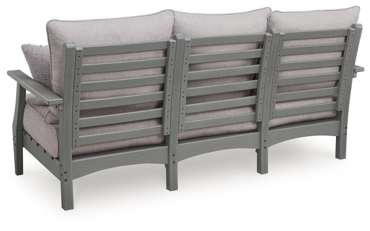 This outdoor sofa prioritizes versatile style and comfort, all while providing the durability you need al fresco. Crafted of a sturdy, wood-look material, it withstands the elements with ease. Cleanable and UV-resistant Nuvella® fabric rounds out the piece with added function.