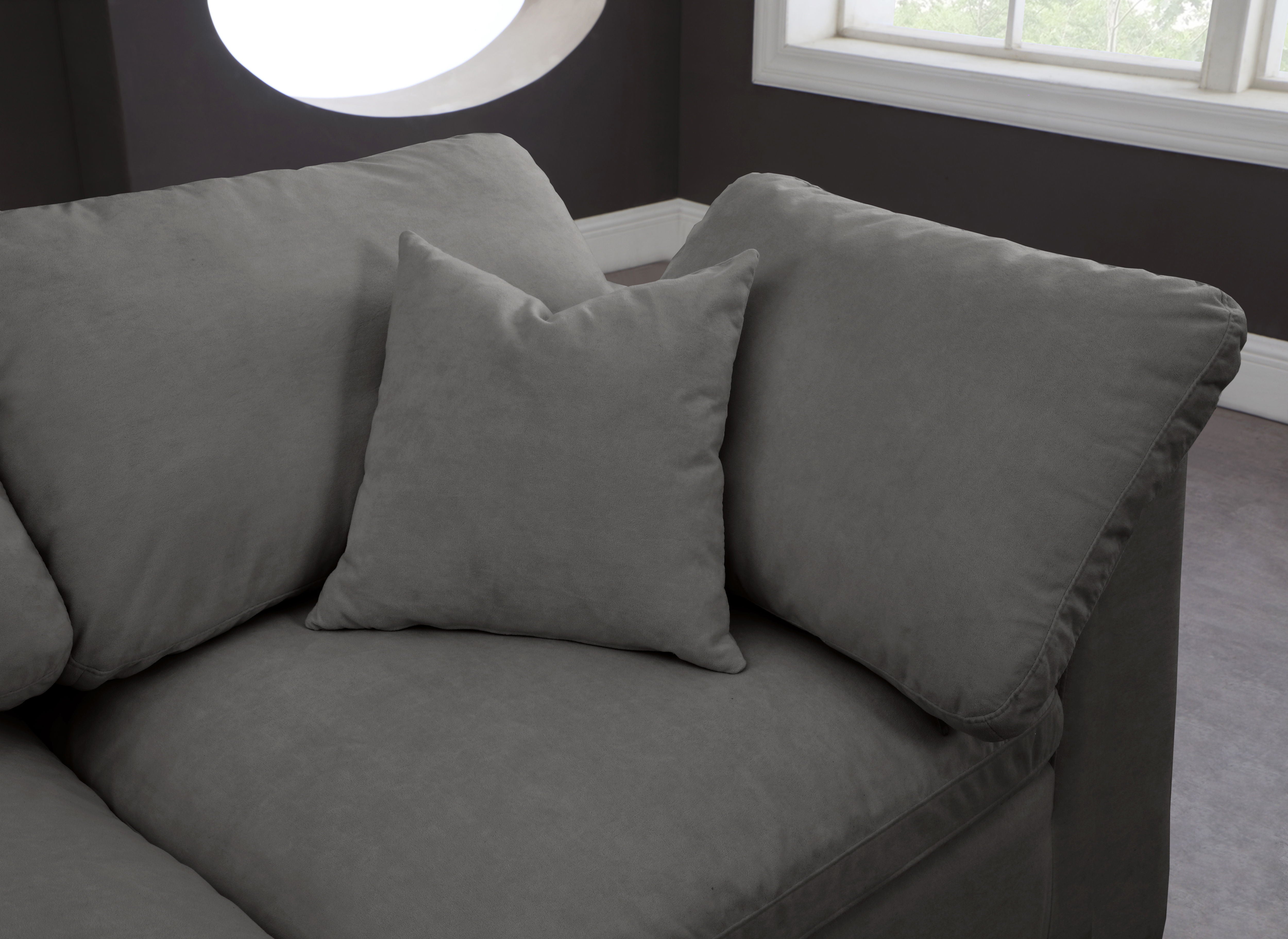 Bring home this Cozy 5-piece sectional for a fresh new look. Embrace casual elegance with this Cozy velvet cloud-like comfort modular fiber-filled seating option. Handsome from all angles, this piece features soft velvet upholstery to make it an easy fit in any room. This modular piece can be combined with other items in the Cozy collection to create a seating group of your dreams. The cushions on this piece are exceptionally comfortableand filled with fiber for luxury that you deserve as you rest and relax.