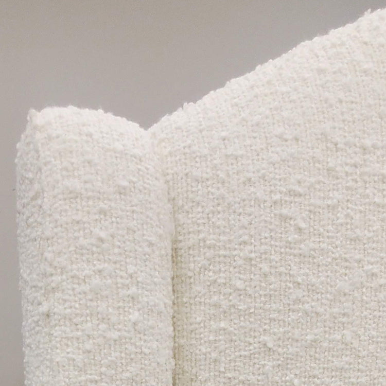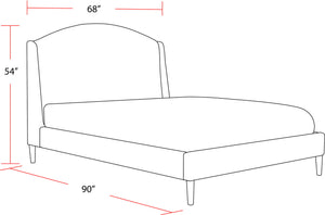 A soft crescent-shaped curve gives this upholstered bed fresh design appeal. Its subtly sloping headboard adds updated character to any bedroom while fully upholstered rails and tapered legs complete the timeless look. Upholstered in a soft, textural bouclé fabric.