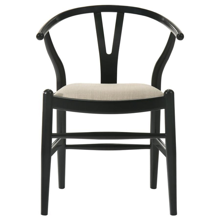 Envision your gatherings transformed with this exquisite dining set, where the sleek lines of modern design meet the timeless allure of faux marble. The table's luxurious marble-esque top is a symphony of style, supported by fin-style legs that ground it with a touch of sophistication. As your ensemble grows with the seamless self-storing extension, the dining tableau adapts, offering a spacious stage for both feasts and intimate conversations. Accompanying the table, the Danish Y-shaped wishbone chairs, dressed in black and beige, whisper of coastal breezes and relaxed elegance, their form both a nod to tradition and a statement of contemporary grace. This dining set doesn't just host meals; it curates experiences.