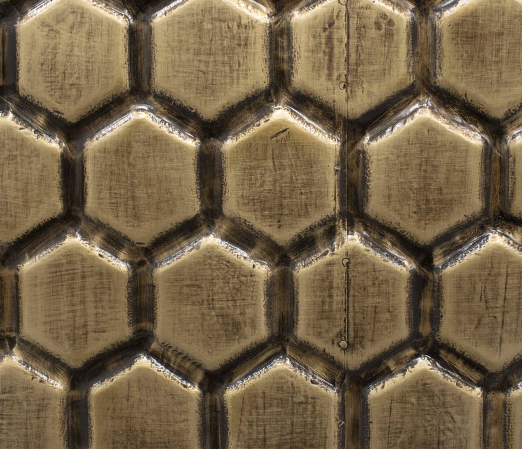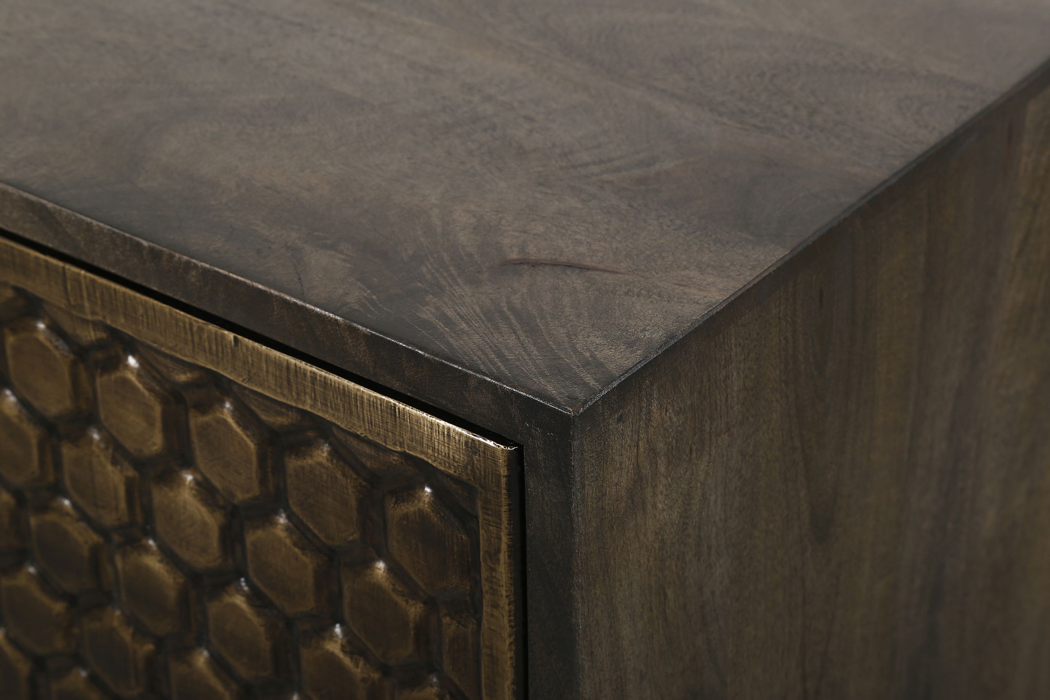 Relaxed meets refined in the chic character of the Cairo multifunctional console. Its distinctive door panels feature and eye-catching pattern of embossed hexagons accentuated in a bronze metal finish. Cairo adds and element of warmth to the room and is destined to be a topic of conversation.