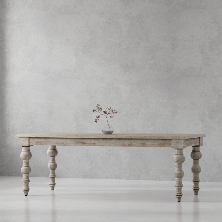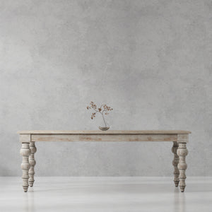 Crafted from solid mango, this table boasts a unique aesthetic with natural variations of color, wood grain, and knots, making each piece one-of-a-kind. Generously proportioned, this table can comfortably seat up to eight guests, making it the perfect centerpiece for your next dinner party. The shaped table with finished edge is complemented by a wide apron and shapely legs, creating a beautiful and functional piece of furniture. Reinforced table supports underneath provide additional support and stability, ensuring that this table will last for years to come. The wood is kiln-dried to minimize warping and splitting, ensuring that your table will remain level and stable. Integrated levelers make it easy to level and align your furniture, making it the perfect addition to any home. Experience the perfect blend of form and function with the 84 Inch Rectangular Table.
