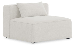 Treat yourself to some long overdue "me time" when you're seated on this Cube Modular Armless Chair. This beautiful modular unit is both eye-catching and elegant, features durable linen upholstery in a soft color that meshes well with nearly any existing color scheme. Pair this modular Armless Chair with other items in the same collection to create an unlimited number of combinations and enjoy the custom seating arrangement of your dreams. Latches underneath make it easy to attach pieces to one another.