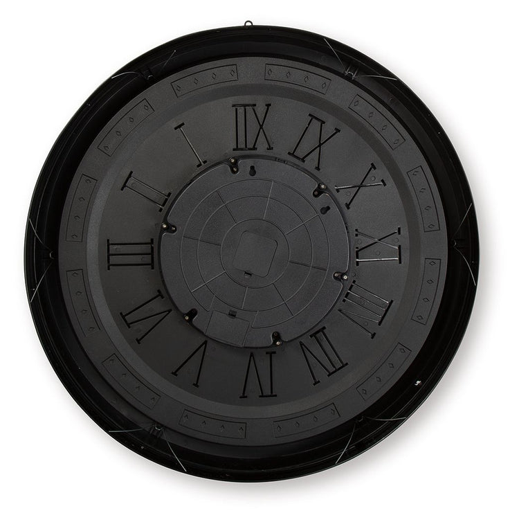 This striking wall clock is a beautiful blend of classic style and industrial charm. A black finish and goldtone Roman numerals add a touch of sophistication, while exposed moving gears create a captivating focal point. Talk about timeless style.