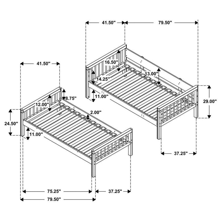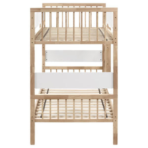 This versatile twin-over-twin bunk bed easily adapts to your family’s needs with five unique configurations, including a bunk bed, kids' loft with a twin bed, daybed with a twin bed, toddler bed with a twin bed, or two separate twin beds. Crafted from solid rubberwood, plywood, and MDF, it’s designed for durability and functionality. The combination of natural wood tones and crisp white accents offers a modern, stylish aesthetic. Perfect for maximizing space in smaller bedrooms or multifunctional areas.