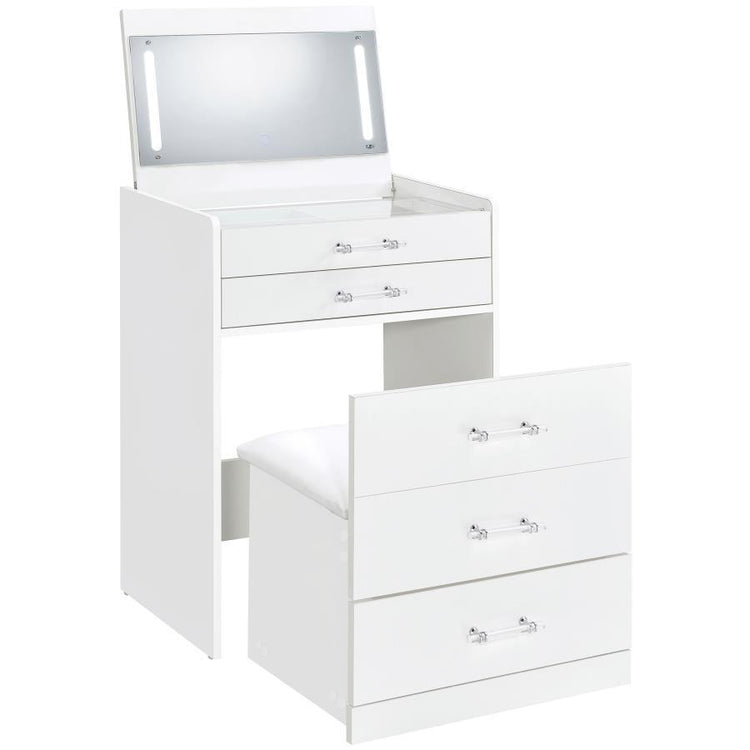Danbury - 3-Drawer Makeup Vanity & Stool Set - White High Gloss