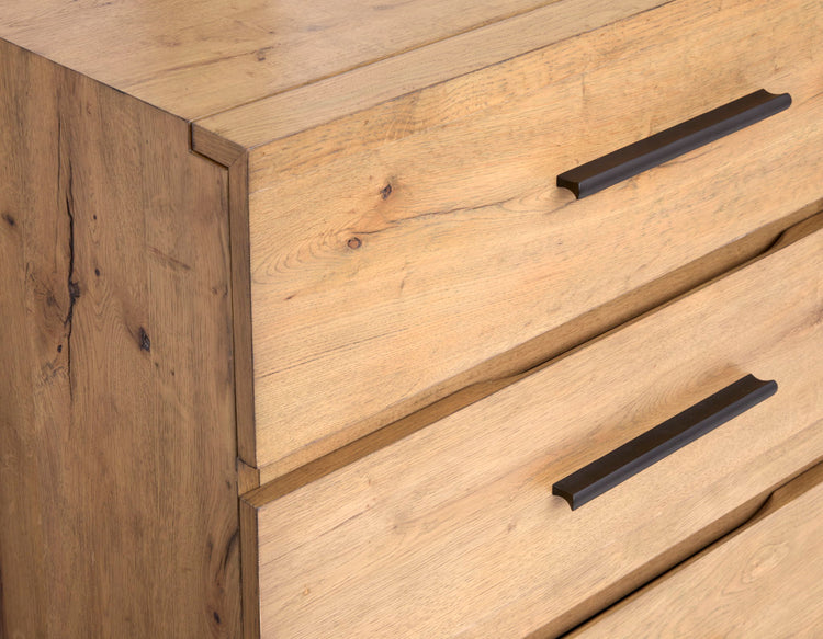 The Davenport Collection redefines mid-century modern design with sleek lines and contemporary warmth. Its Rustic Caramel finish and minimalist Dark Bronze hardware deliver a fresh and sophisticated aesthetic. The smoothly rounded edges of the casegoods add a subtle softness and perfectly balancing form and function.With its modern edge and timeless appeal and the Davenport Collection transforms your bedroom into a stylish retreat designed for today’s living.