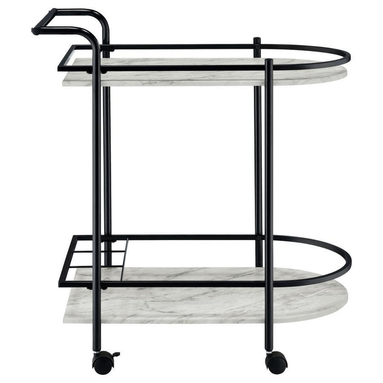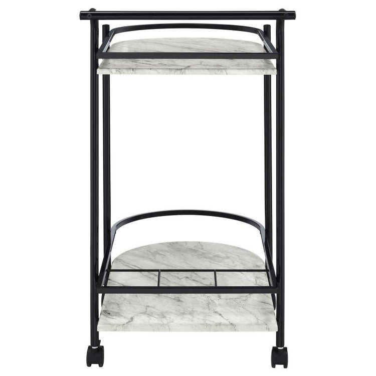 Desiree - 2-Tier Faux Marble Shelf Metal Bar Cart - Black