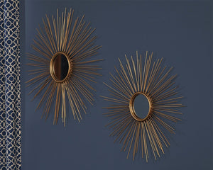 Bring a burst of energy into your space with this striking sunburst mirror. The blend of an ultra-mod aesthetic with an antiqued goldtone finish is a beautiful balance.