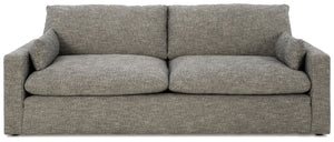 On the days when rest and relaxation seem out of reach, this set provides a positively plush seating experience. Its feather-fiber blend cushions invite you to float away in cloud-like comfort. Striking granite-hued upholstery and a streamlined frame grant this cozy piece a look well-suited to contemporary spaces.