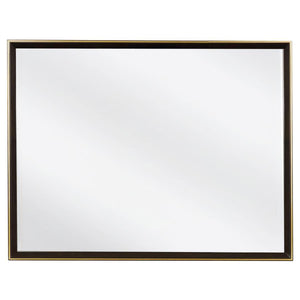 This framed dresser mirror adds a touch of modern sophistication to your bedroom. The finish complements a variety of decor styles, providing a neutral yet stylish accent. Its clean-lined frame echoes the mitered trim of the dresser, creating a cohesive look that enhances the sense of depth and dimension in your space. Perfectly sized to sit atop the matching dresser, this mirror offers both functionality and elegance, making your morning routines more enjoyable. Elevate your bedroom’s aesthetic with this versatile and beautifully crafted mirror.