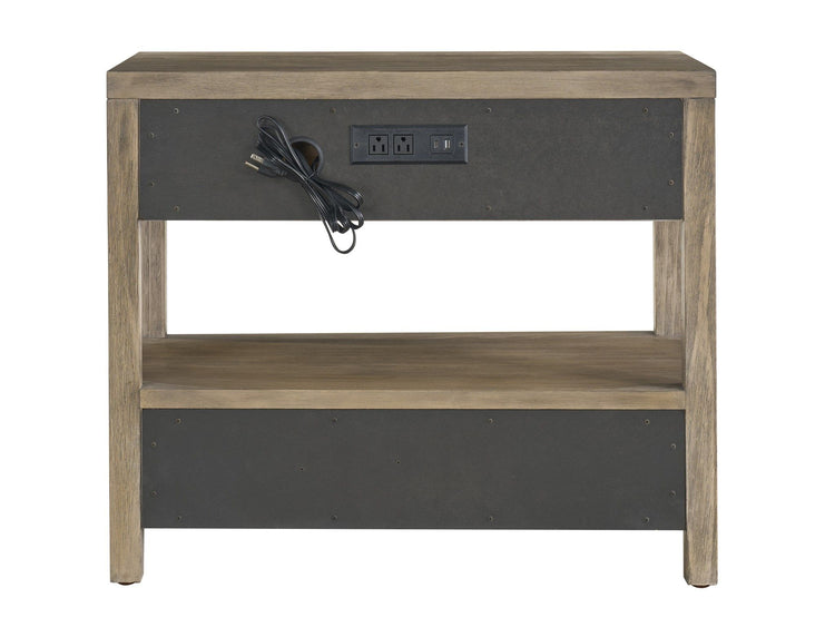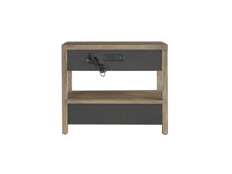 The Nightstand showcases the collection's architectural inspiration with its distinct latticework detailing, finished in a warm. This piece offers both open and drawer storage, combining functionality with a touch of sophisticated design. Its unique texture and clean lines bring a refined, yet natural aesthetic to your bedside.