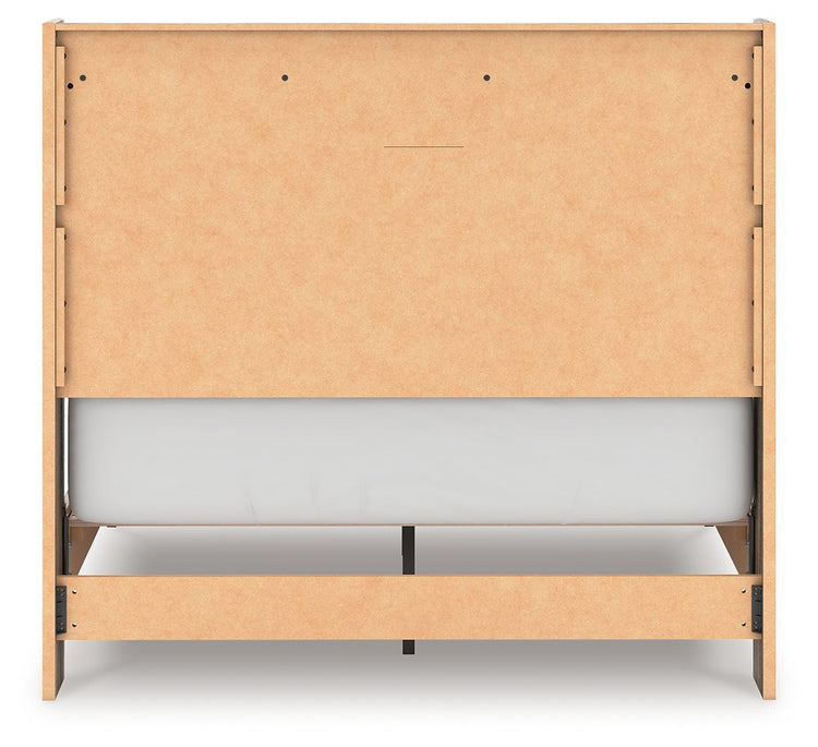 Rest in the casually cool style of this panel storage bed. A weathered finish and chill LED lighting create an easygoing vibe, setting the scene in your restful retreat. Spacious drawers underneath provide plenty of storage. The bed's clean-lined design provides a fuss-free look.