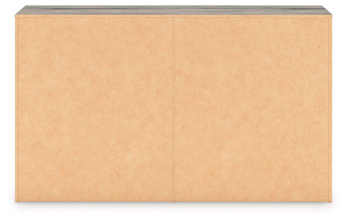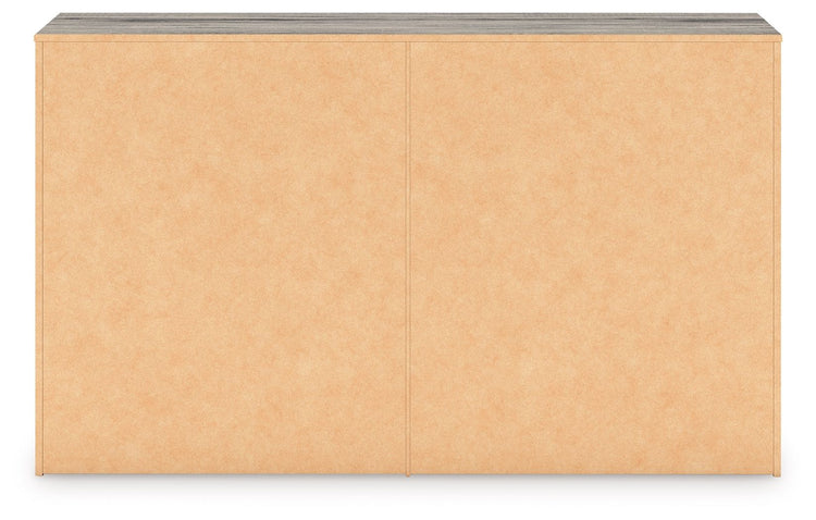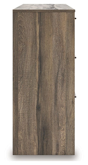Casually cool style and lots of storage go hand in hand with this dresser. A weathered finish over replicated oak grain creates an easygoing vibe, setting the scene in your restful retreat. Clean lines and modern handles provide a fuss-free look. And the dresser's six roomy drawers give you plenty of space for stowing away clothes and more.