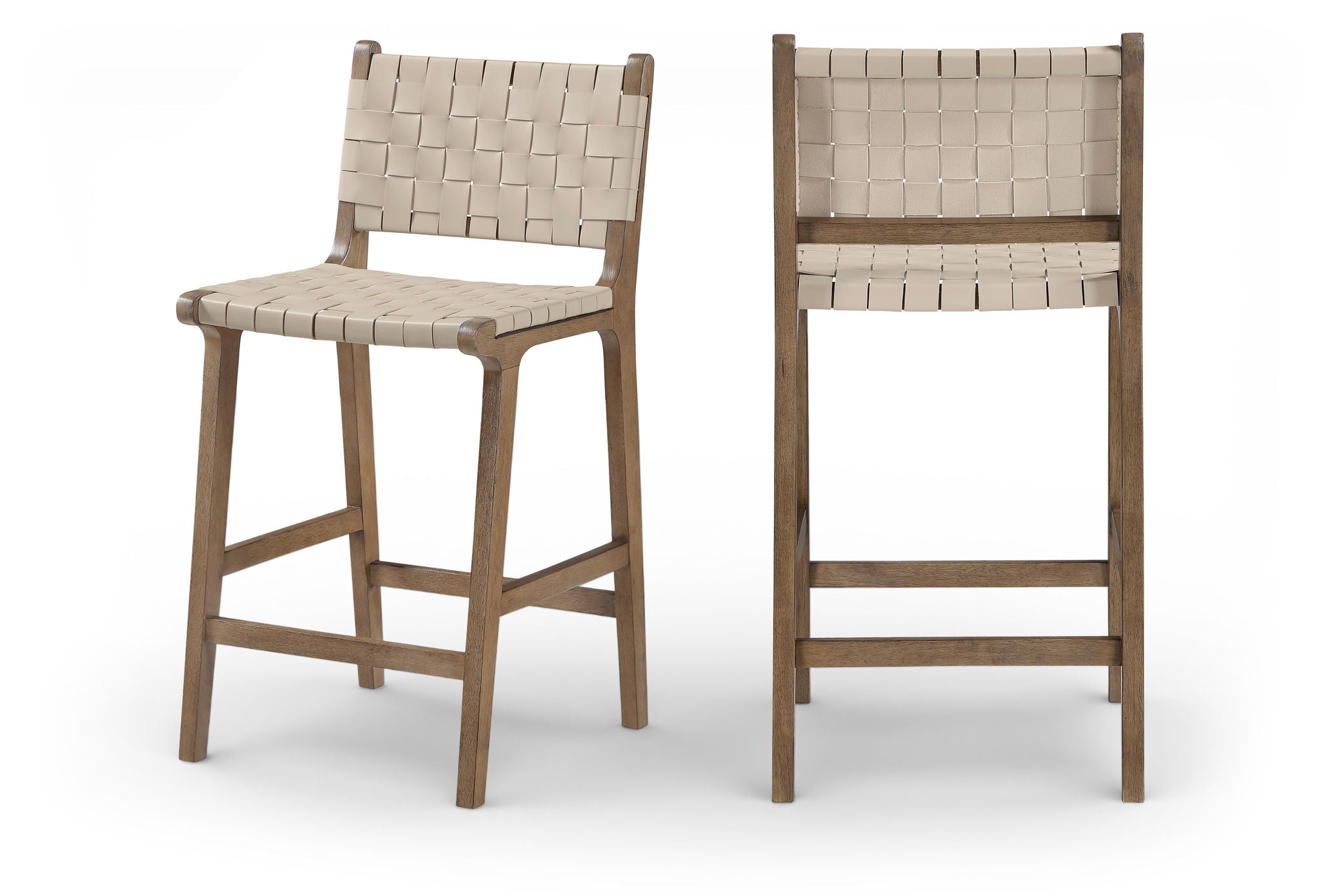 Entwine - Vegan Leather Upholstered Counter Stool - Beige / Painted Brown