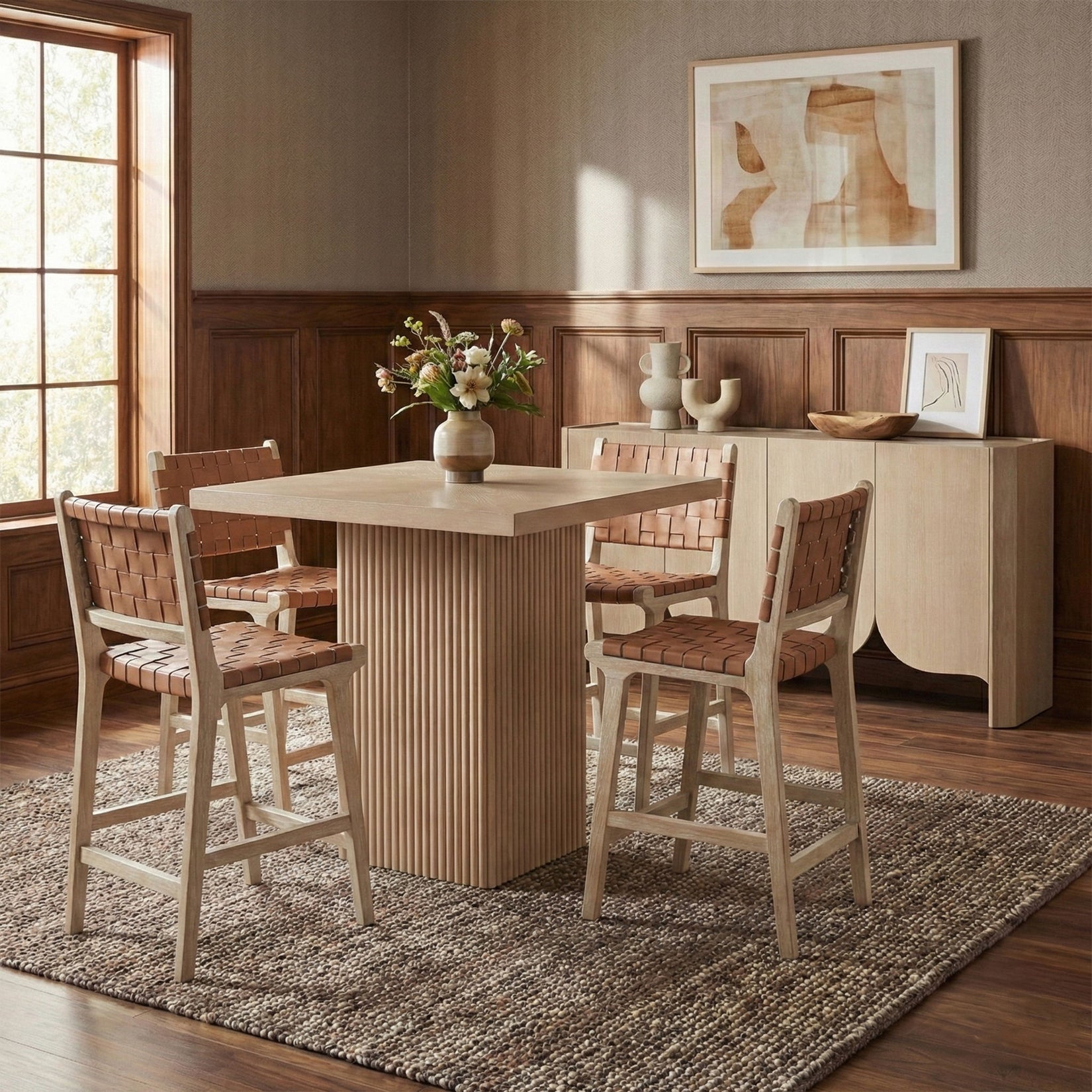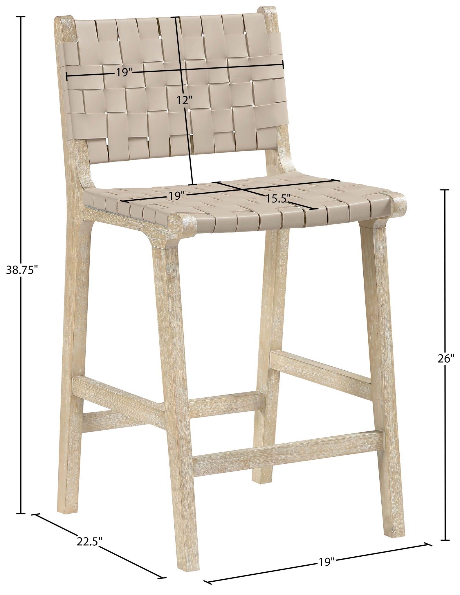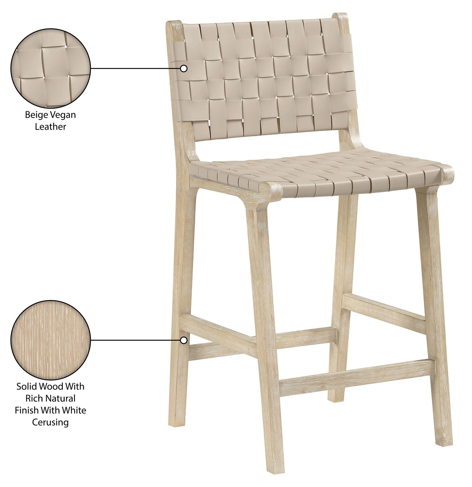 Entwine - Vegan Leather Upholstered Counter Stool - Painted Natural