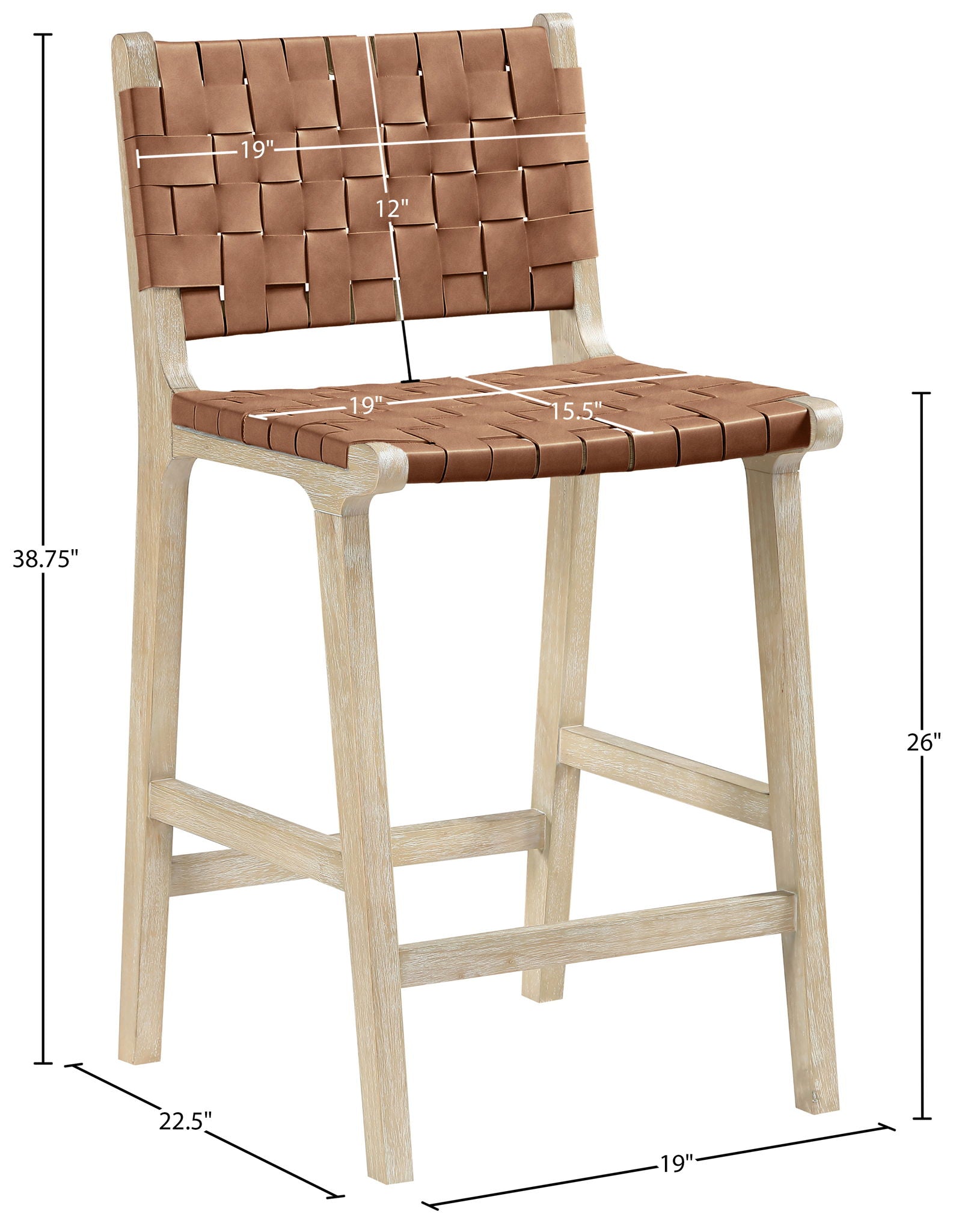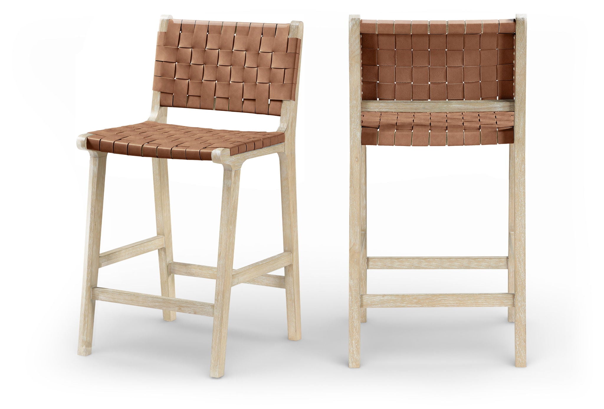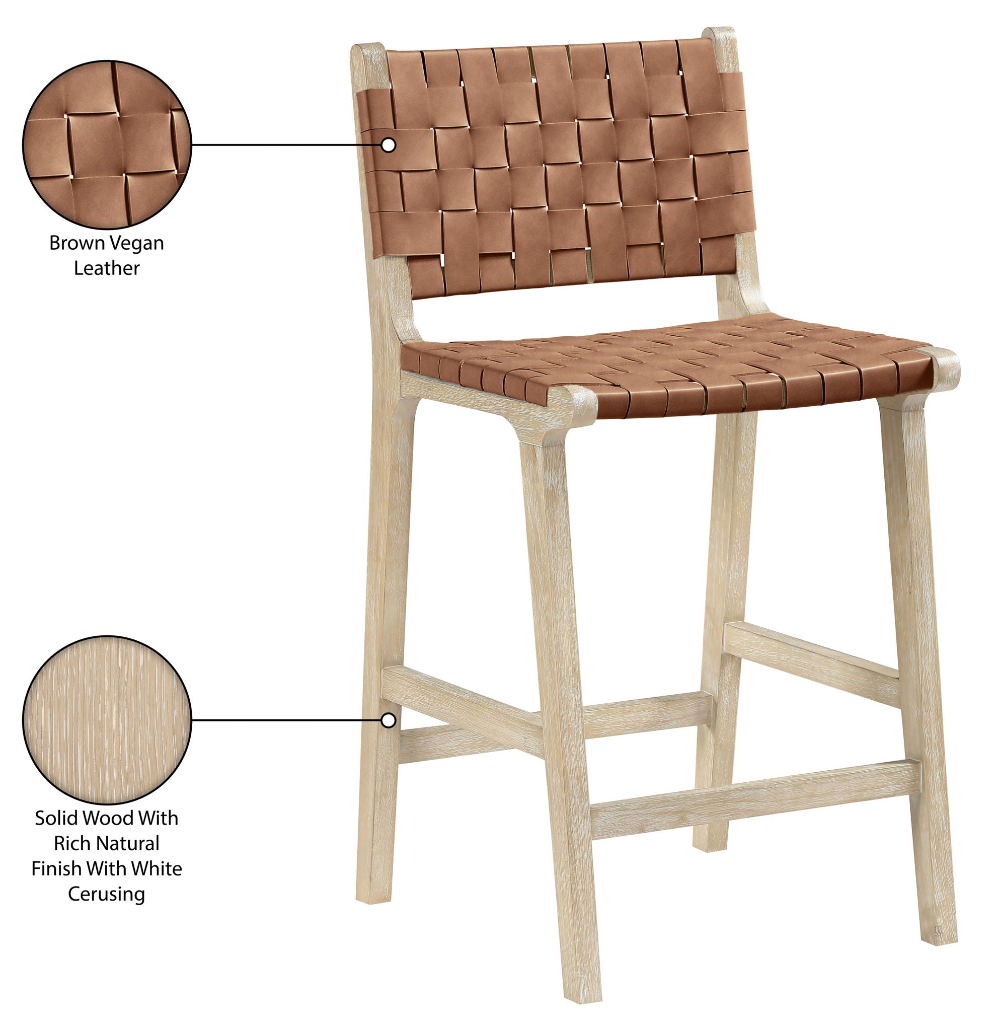 Entwine - Vegan Leather Upholstered Counter Stool - Brown / Painted Natural