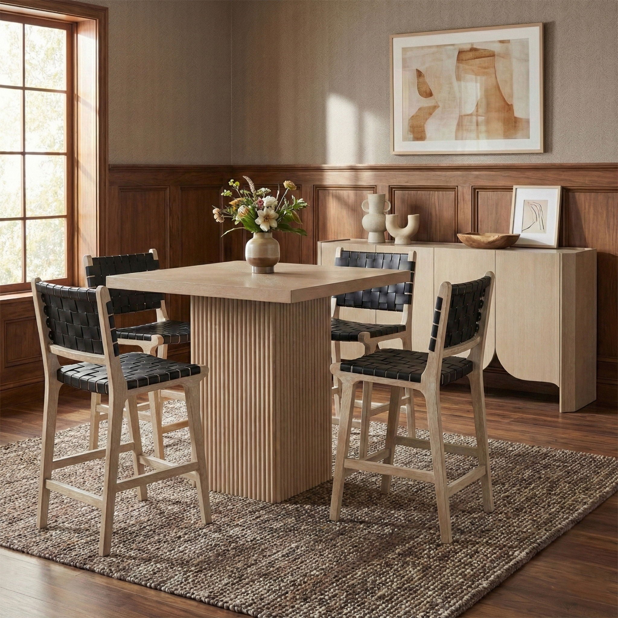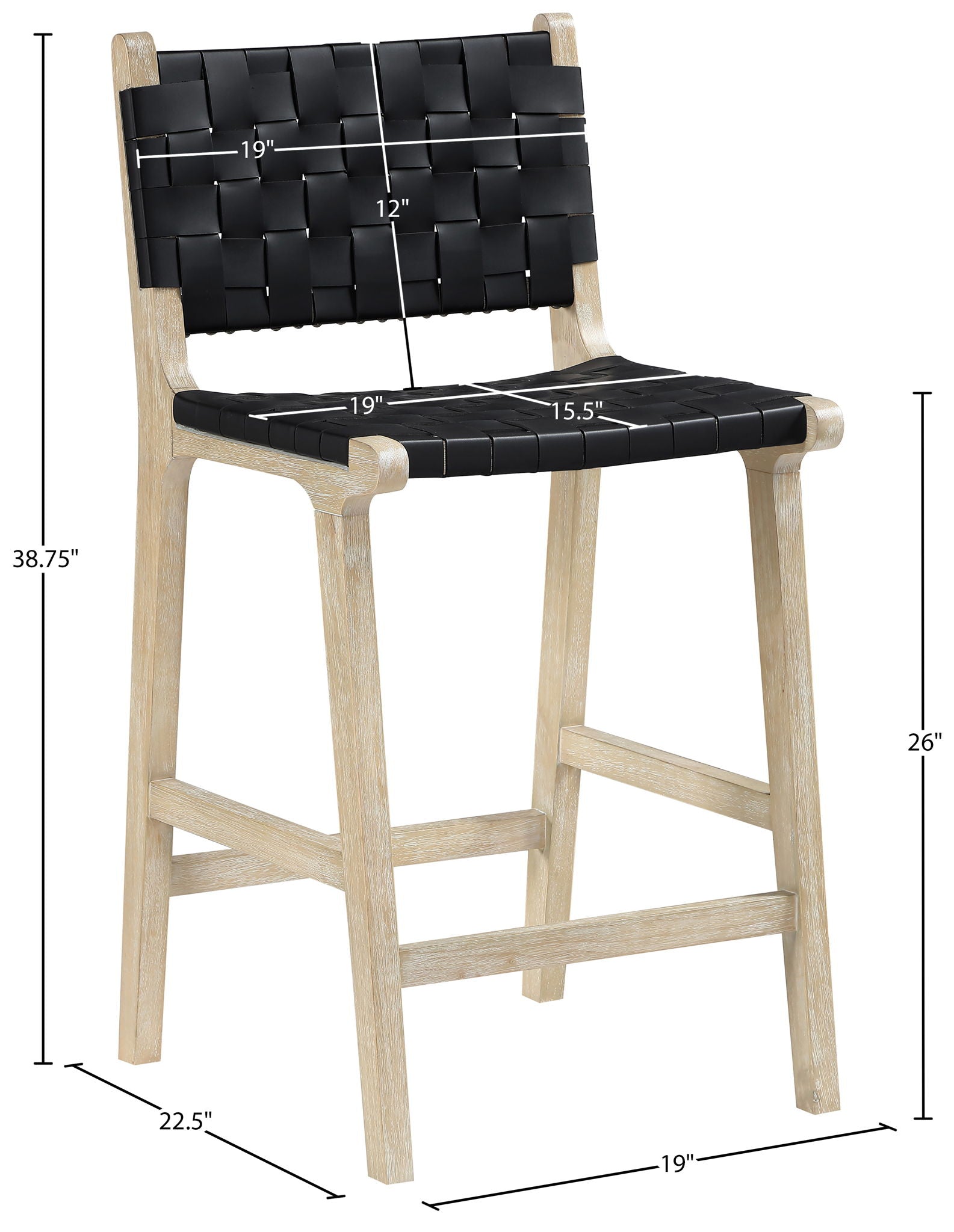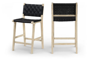 Entwine - Vegan Leather Upholstered Counter Stool - Black / Painted Natural