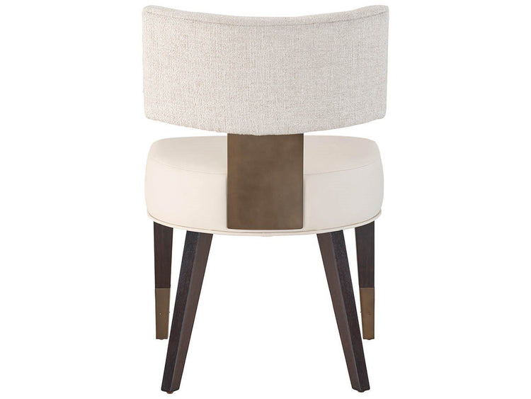 Tapered legs and antique satin brass metal accents add a touch of sophistication to the Klismos inspired back of the Loleta Side Chair.