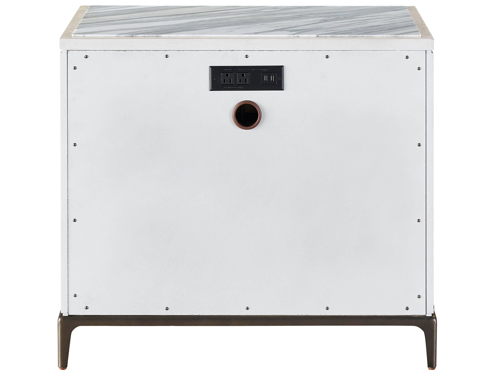 Dazzling white Calacatta marble is the star of the Maren Nightstand, complemented by soft white oak panels and accented with satin bronze hardware and base frame.