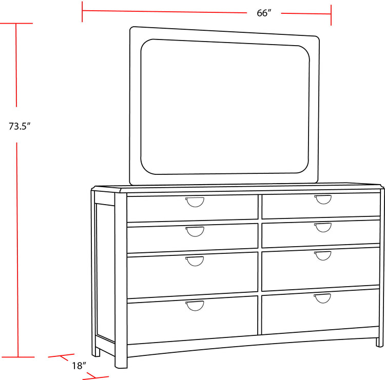 Escape - Bedroom 8 Drawer Dresser And Mirror - Glazed Natural Oak
