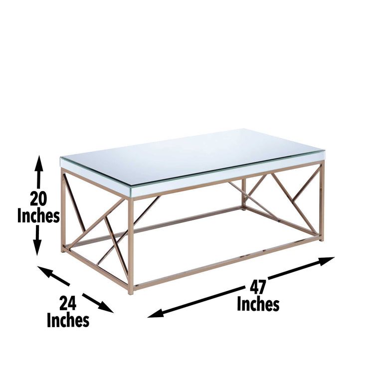 Mirrors add vibrancy, light, and the illusion of space to decor styles, and theEvelyn Cocktail Table will do the same in your living room. Both the top and apron feature beveled mirrors designed to dazzle, while below, the iron frame combines a finish with bold, geometric angles. The result is a fashionable focal point with a modern edge.