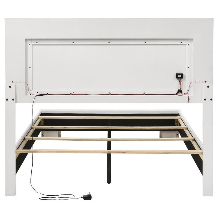 Felicity - Wood Queen LED Panel Bed - White High Gloss