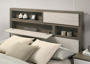 Fenwick - Queen Bed Bookcase Headboard - Gray Oak